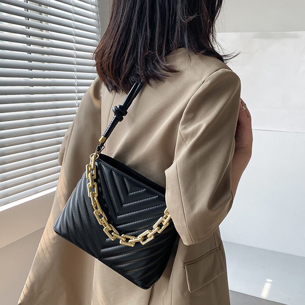 バッグ チェーン付き ハンドバッグ 小さめ 斜めかけ鞄 可愛い 通勤通学 スクエアバッグ ファスナー