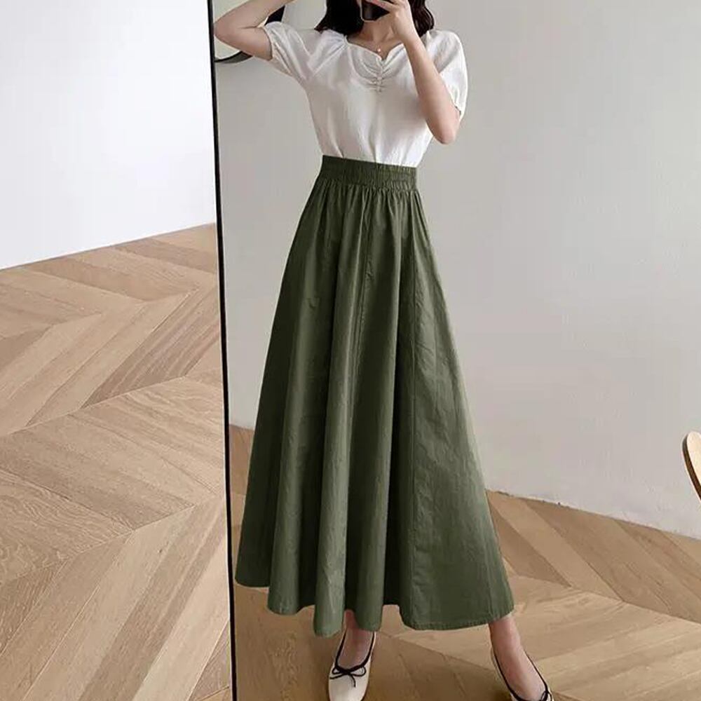 ロング丈スカート フェミニン カジュアル ウエストゴム シンプル 無地スカート おしゃれ ボトム