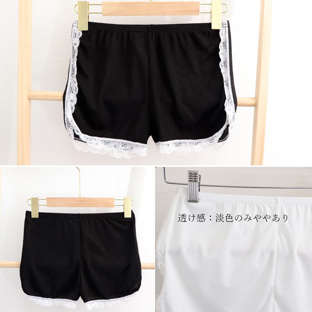 レディース レース ショートパンツ 肌着 透け防止 見せパン ウエストゴム 可愛い下着 ルームウエア