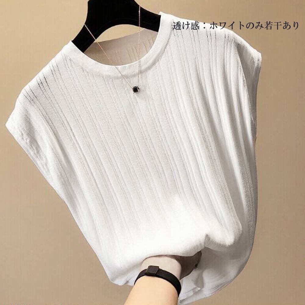 オフィスカジュアル 夏トップス 着やせ シンプルリブニット