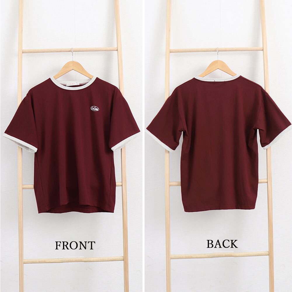 シンプル配色ロゴt ラウンドネック夏服 サマーtシャツ無地