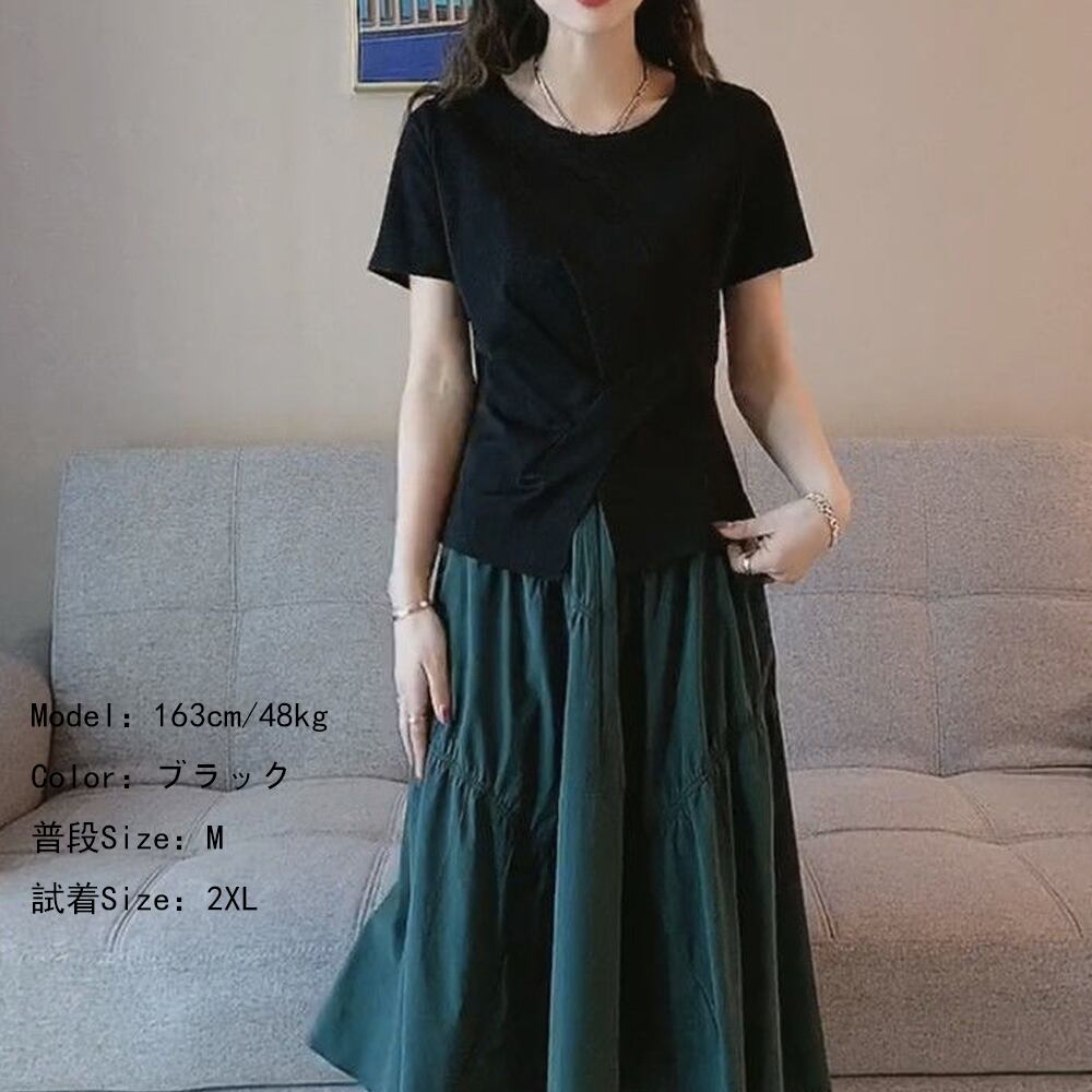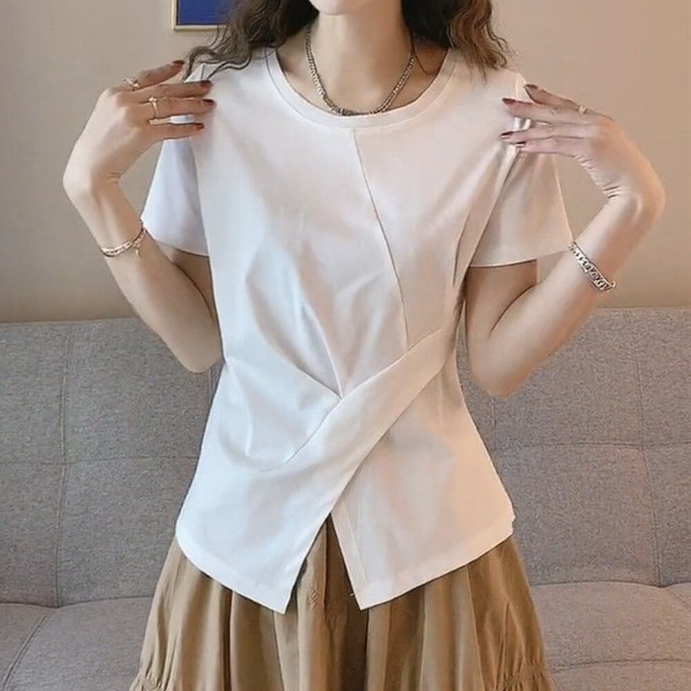 レディース 無地 ラウンドネック トップス 半袖 薄手 韓国風 カットソー 夏サマー 白 フェミニン