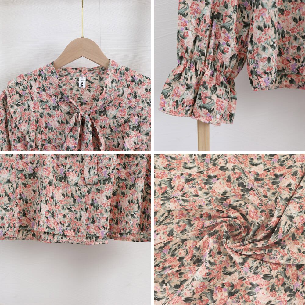お洒落とろみシャツ フラワー春夏コーデ 韓国ファッション服