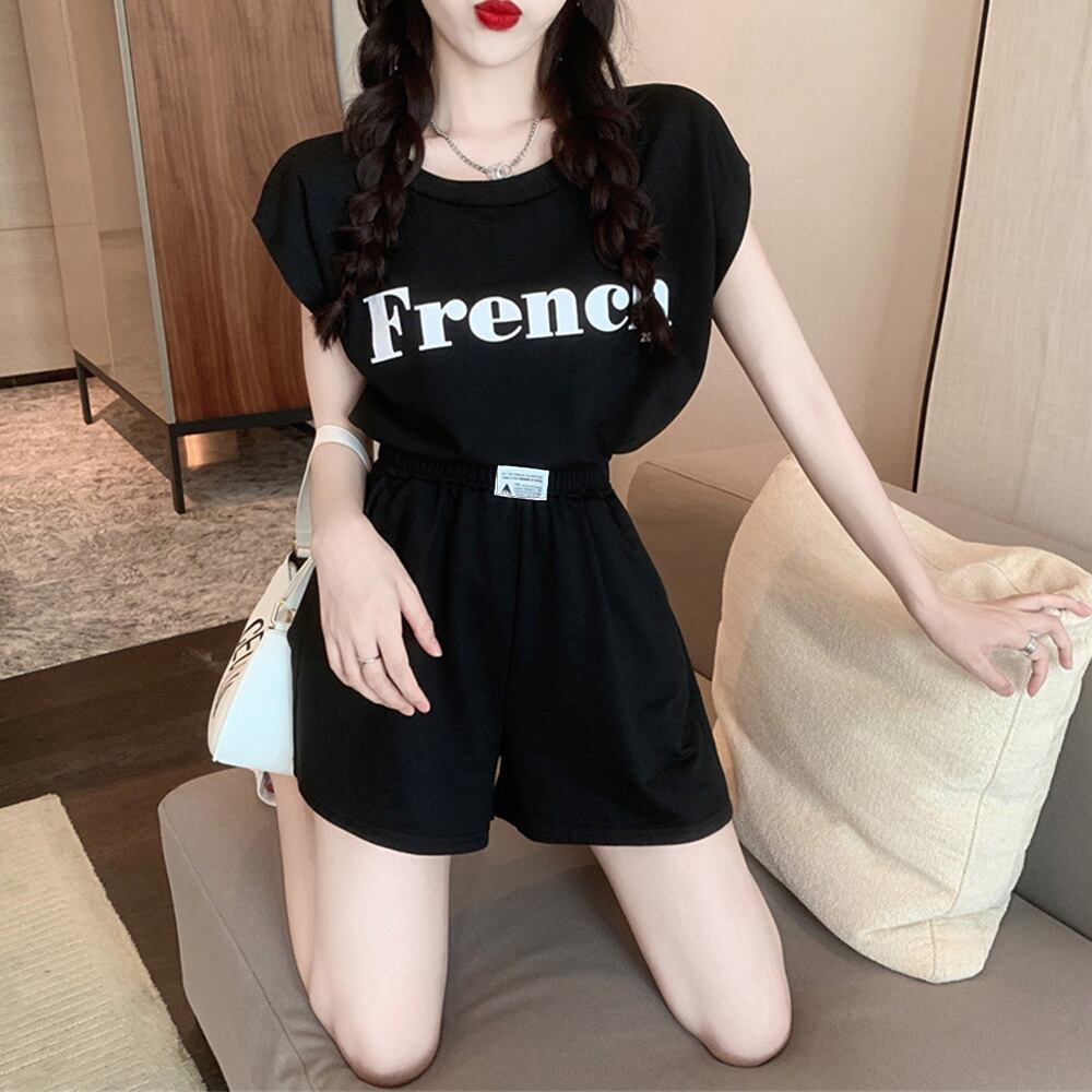 トップス 韓国ファッション tシャツ レディース ショートパンツ 背中カッティング 薄手 ロゴ入り カジュアル 部屋着