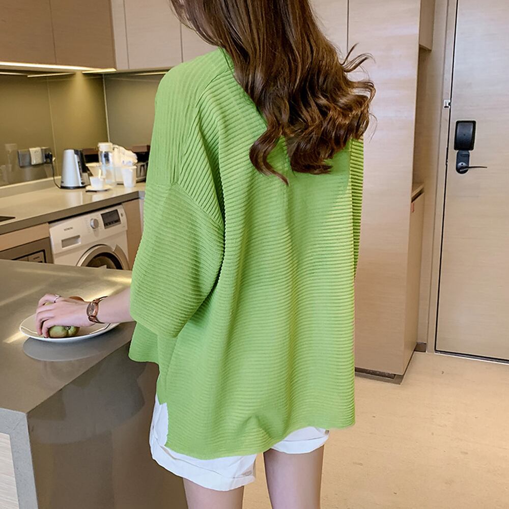 サマーニット スリット ゆったり ニットセーター ドロップショルダー 薄手トップス オフィス きれいめ プルオーバー