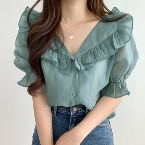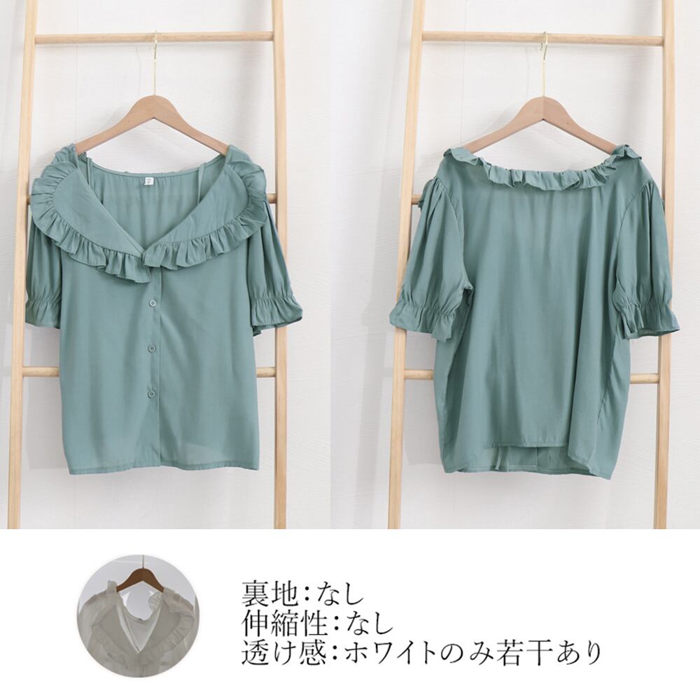 シャツブラウス レディース フリルブラウス 半袖 通勤 可愛い 大人こなれ感 薄手 無地 OL おしゃれ フェミニン韓国