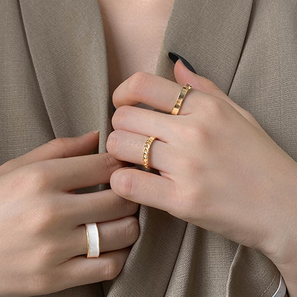 シンプルコーデと相性のよいマルチデザインリング3ピースセットです
