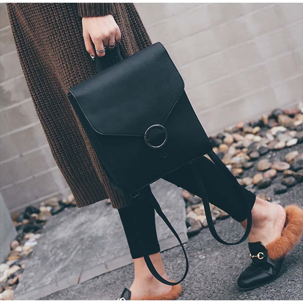 スタイリッシュなリング金具がおしゃれなスクエア型かぶせリュックサック