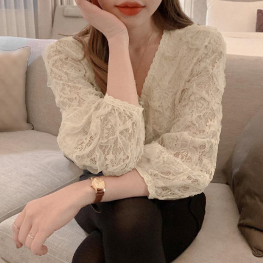 レースブラウス レディース九分袖Vネック