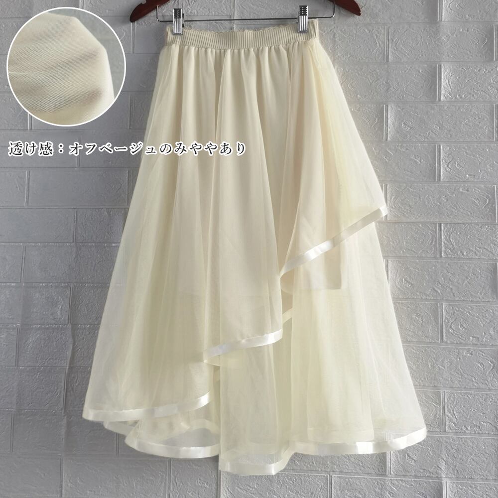 無地スカート着やせ ボトムス 春夏 体型カバー 透け感