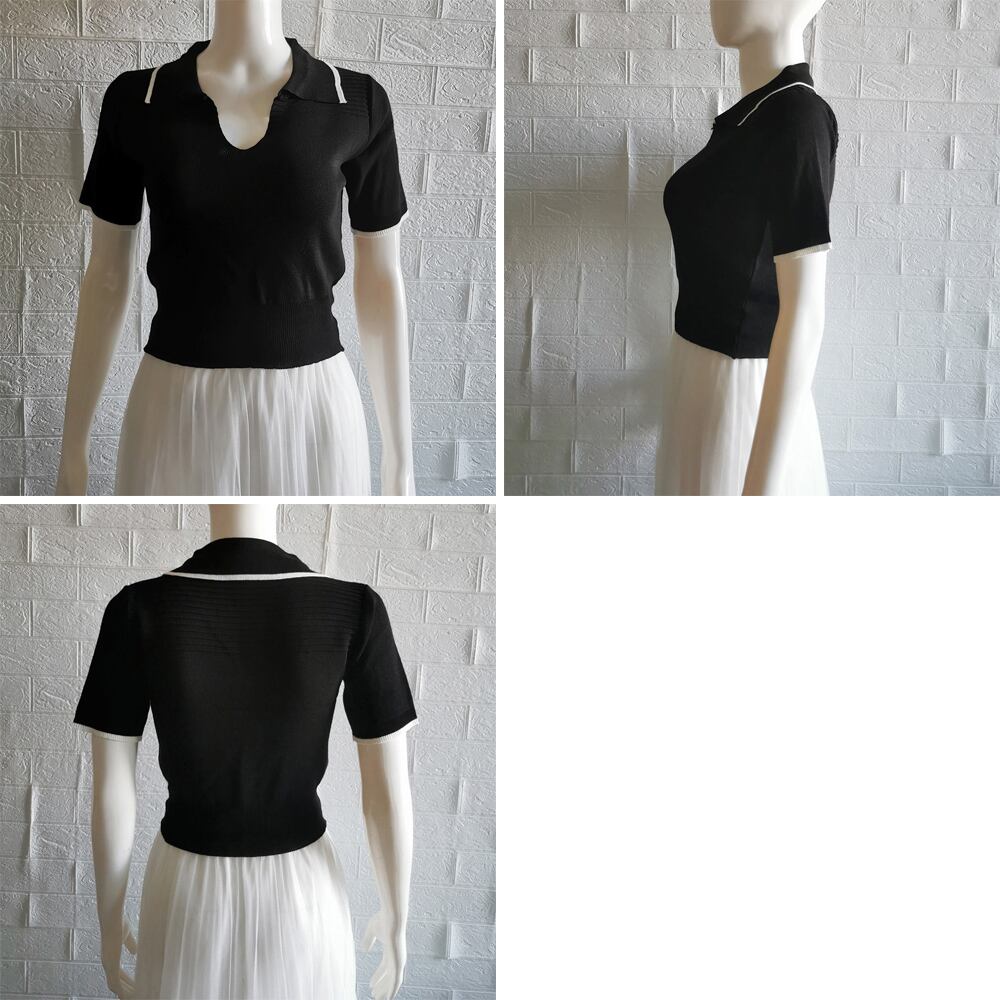 ポロニット春夏 カジュアルトップス Vネックニット配色