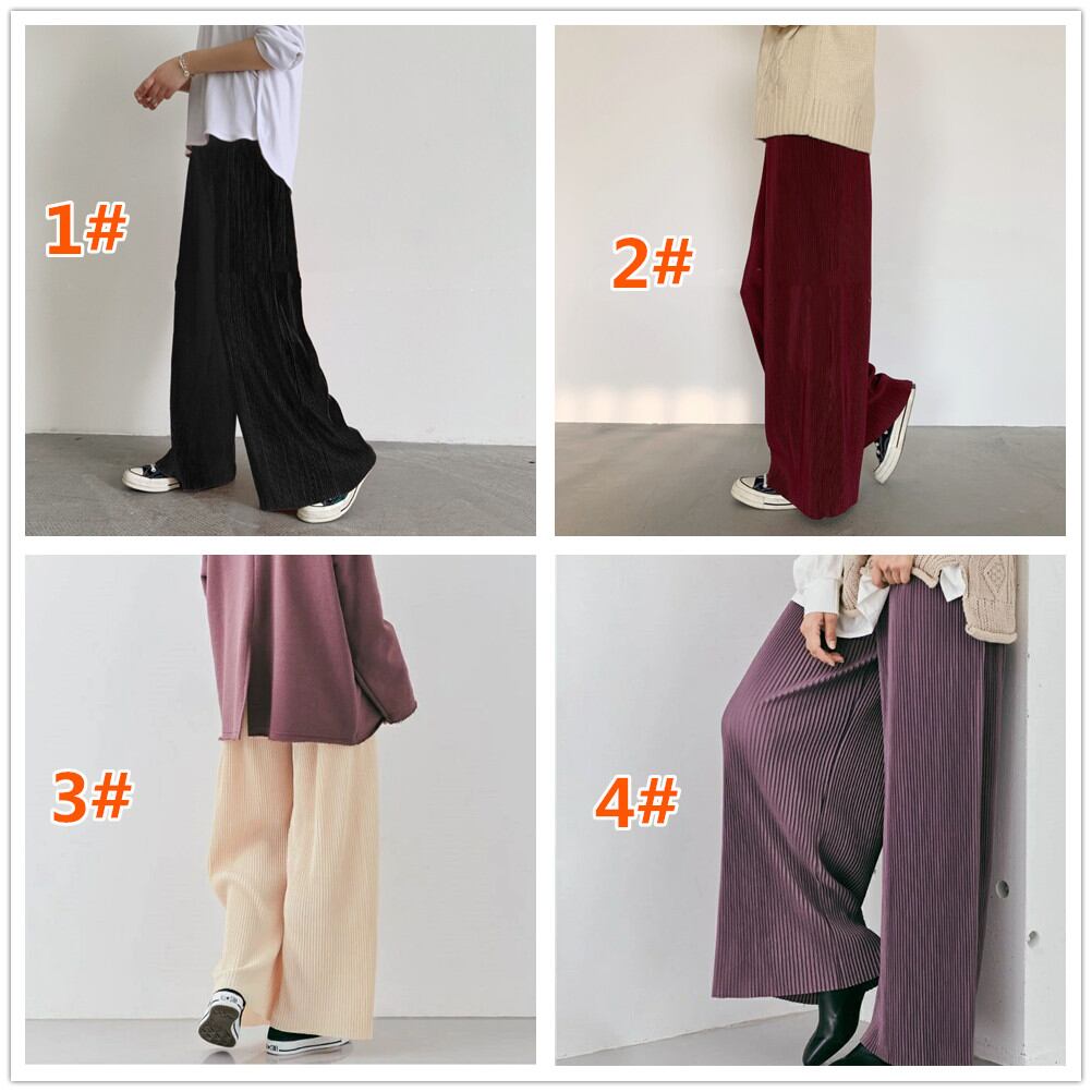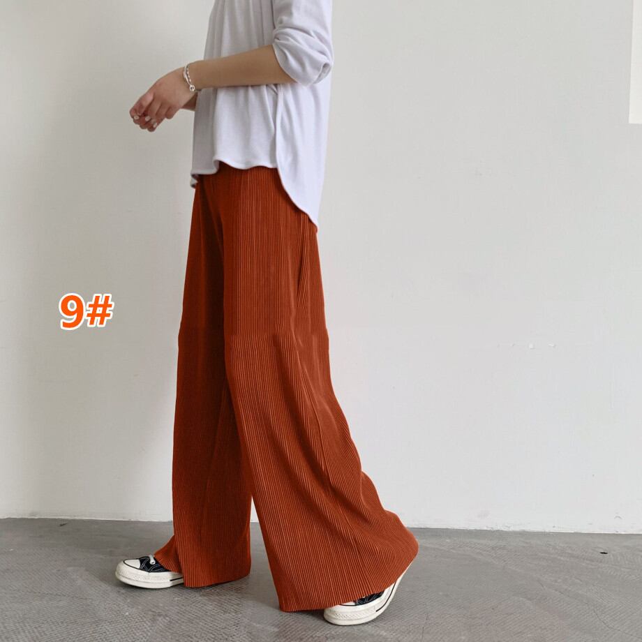 プリーツパンツ 2022年新作 ワイドパンツ セルフカット 大きいサイズ ウエストゴム 着痩せ 裾カットOK