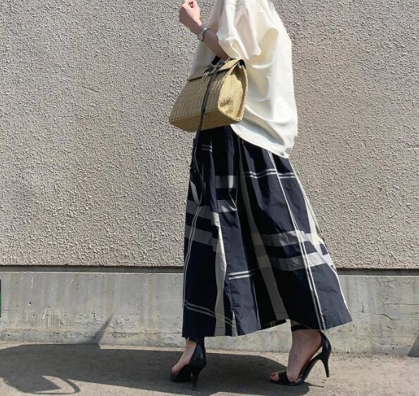 スカート 2022年夏新作 楽天人気アイテム ウエストゴム Aライン チェック柄