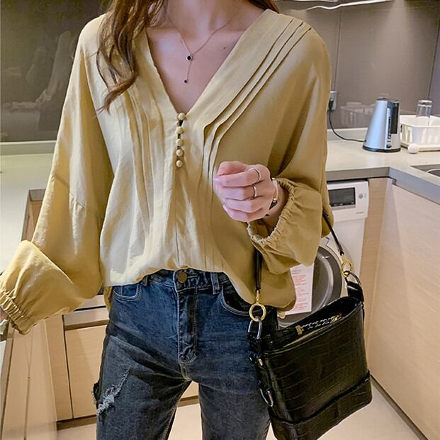 通勤シャツ Vネック ブラウス 長袖 人気ブラウス レディーストップス 2022年新作