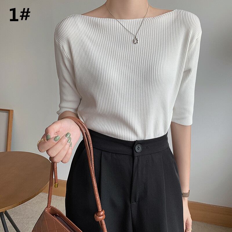 Tシャツ ニット 2022年新作 半袖シャツ ニットトップス レディース シンプル フレア