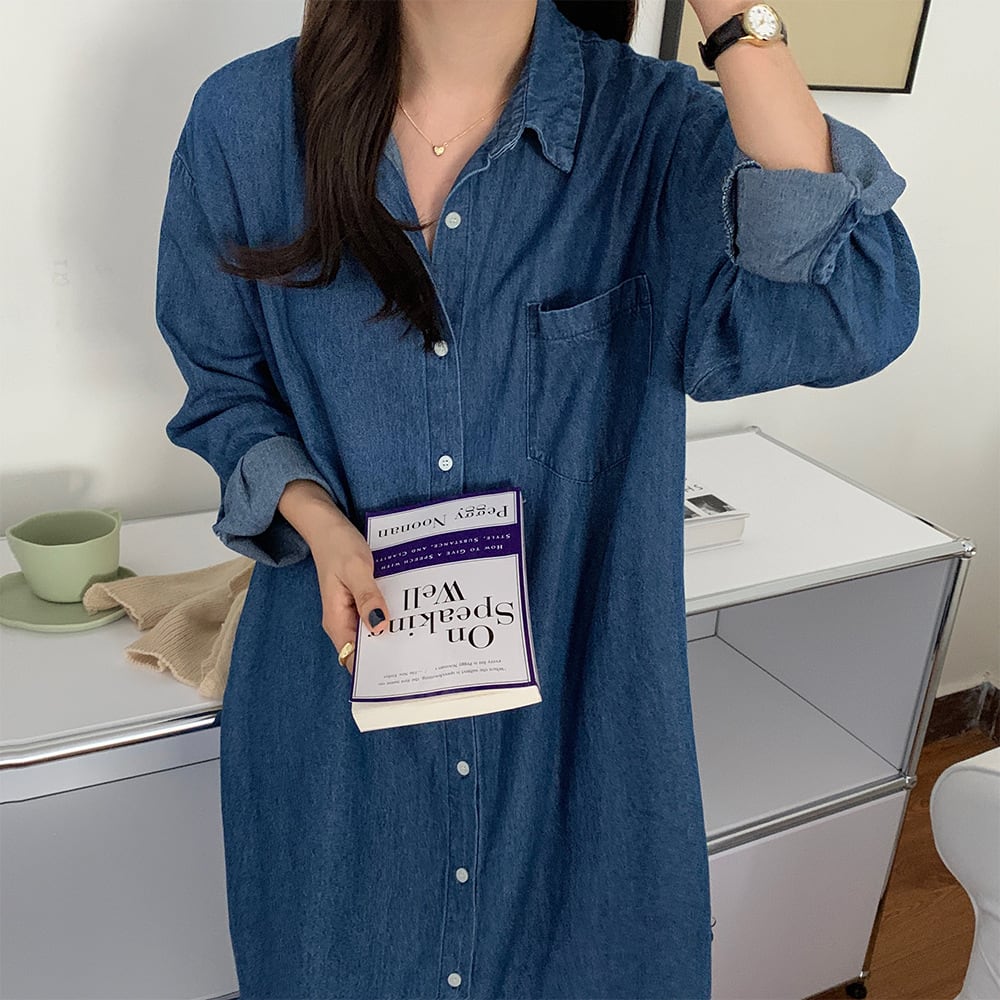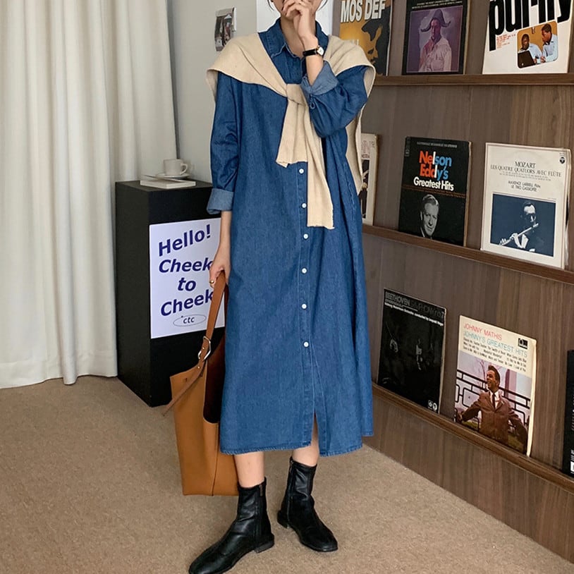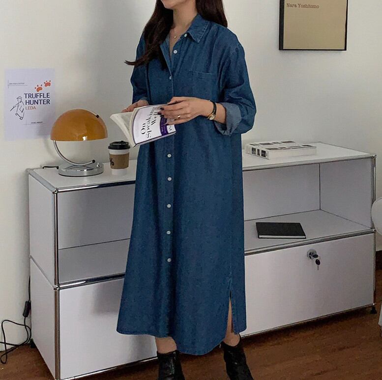 ワンピース 秋新作 デニムワンピース シャツワンピ 韓国風 レディース服 ロング丈 着回し