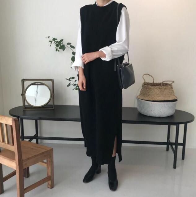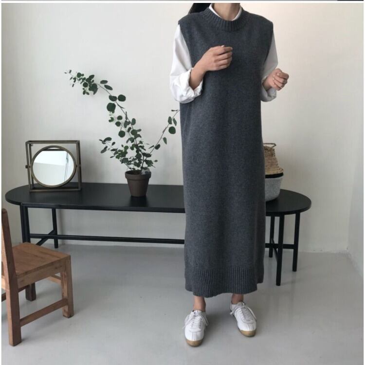 秋冬新作 ニットベスト ロング丈ベスト ロング丈ワンピース シンプル レディース オシャレ