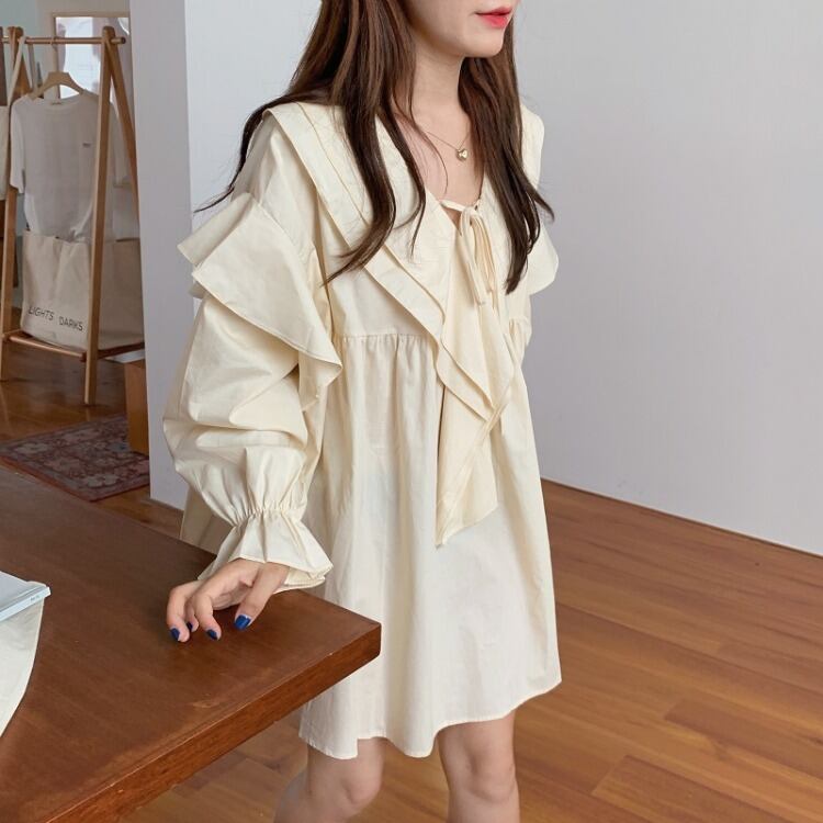 ワンピース 秋新作 韓国風 レディース服 不規則デザイン 着回し 体型カバー フレア 4色