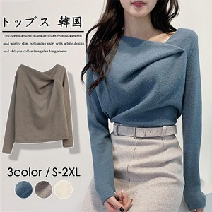秋冬新作 ニットトップス セーター 不規則 長袖 レディース ゆったり オシャレ