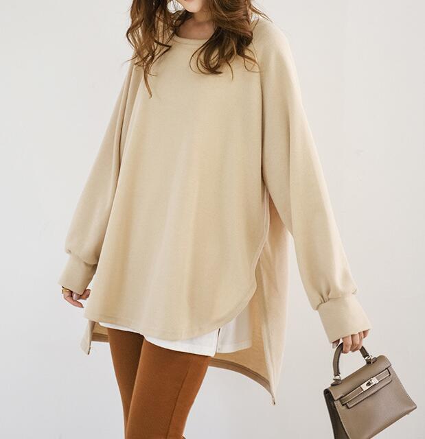 秋冬新作 プルオーバー レディーストップス クルーネック 不規則デザイン ゆるシルエット カジュアル