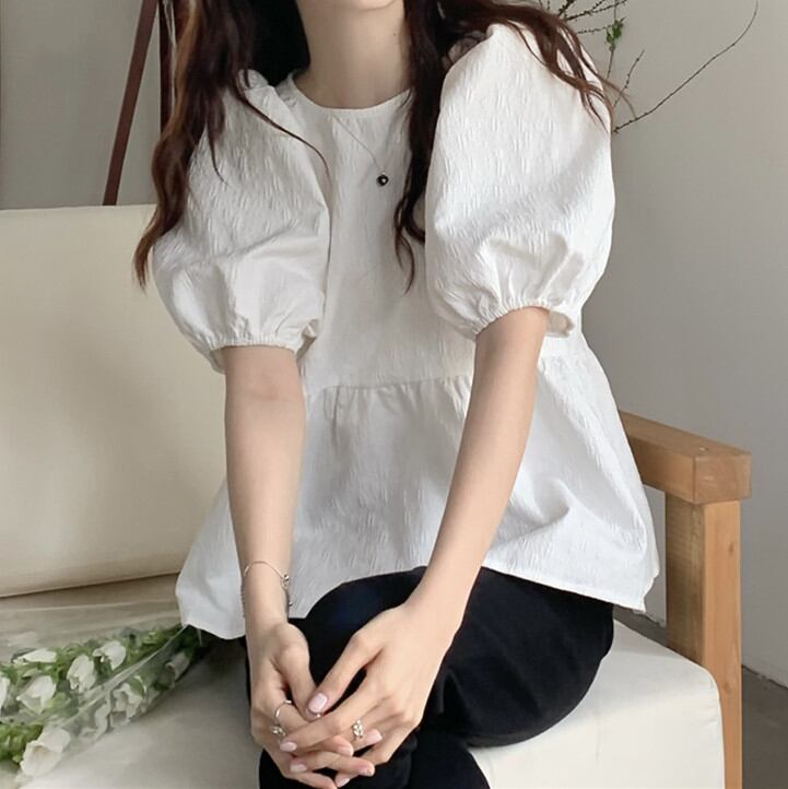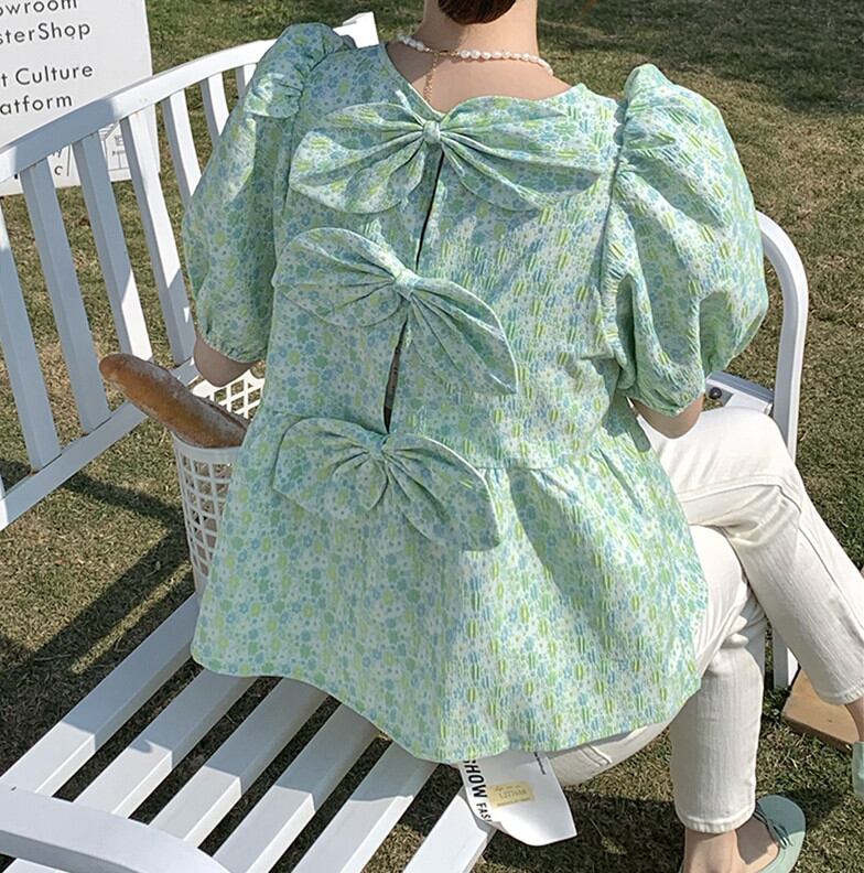 韓国風 ブラウス 2022年新作 レディーストップス 半袖シャツ バックリボン ハブスリープ 可愛い