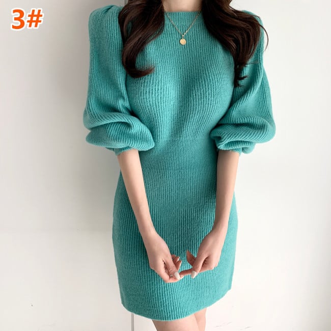 秋冬新作 ニットワンピース ミニワンピース ラウンドネック レディース 着痩せ おしゃれ