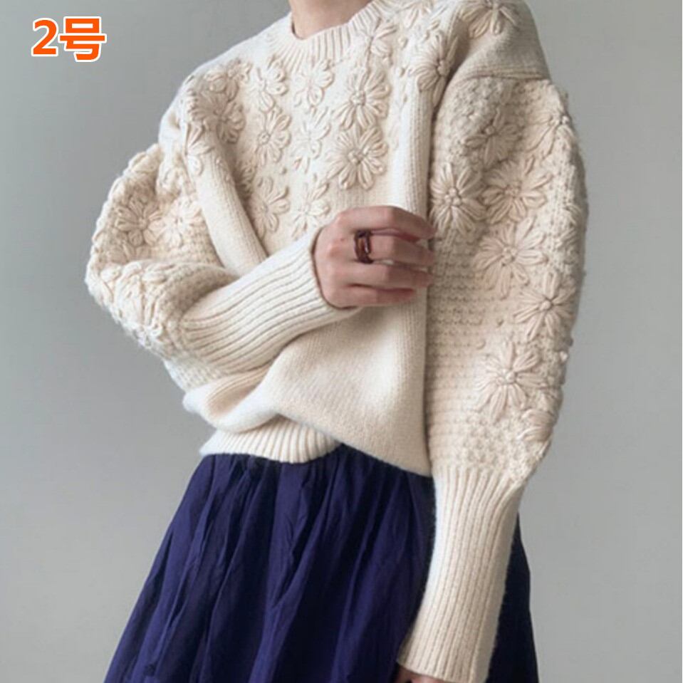 秋冬新作 プルオーバー セーター 韓国風 レディーストップス ニット ラウンドネック 刺繍