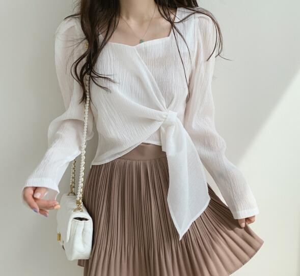 韓国風 ブラウス 2022年春夏新作 人気シャツ レディーストップス ハブスリープ スタイリッシュ 3色