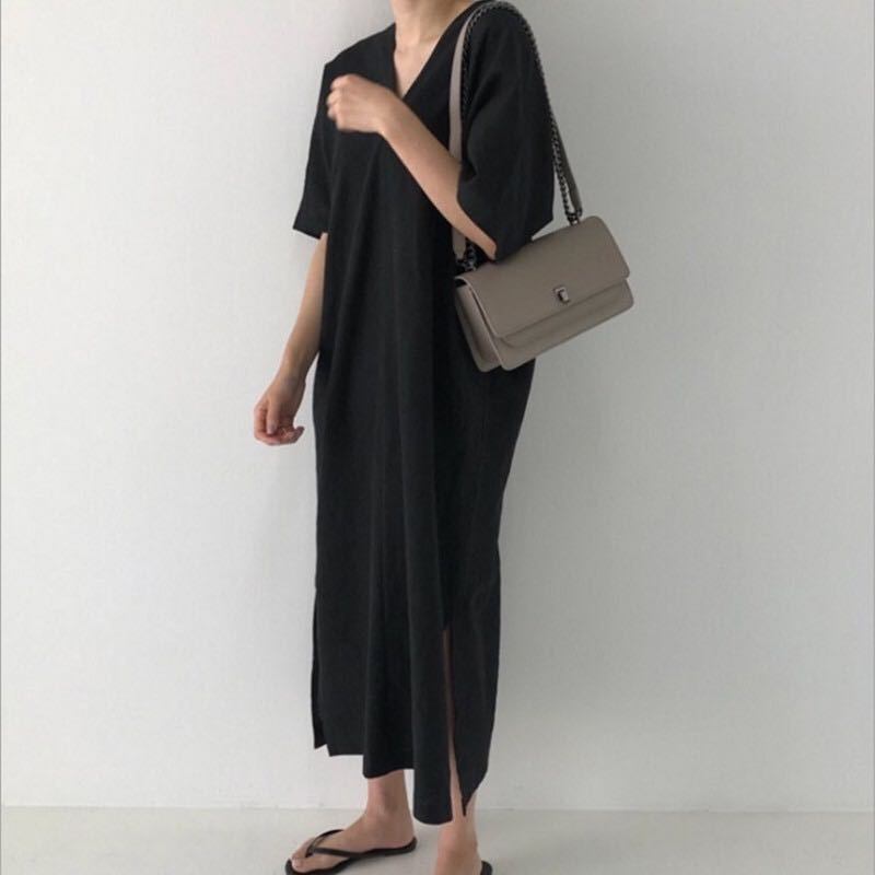 ワンピース 2022年新作 ロングワンピ レディース ハイネック Vネック 体型カバー カジュアル
