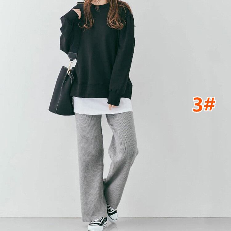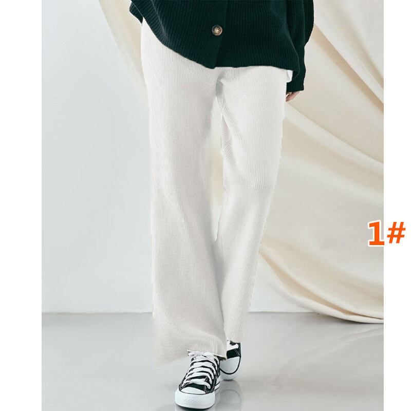 レディースパンツ ワイドパンツ ニット ロング丈パンツ 体型カバー ハイウエスト ゆったり 普段着