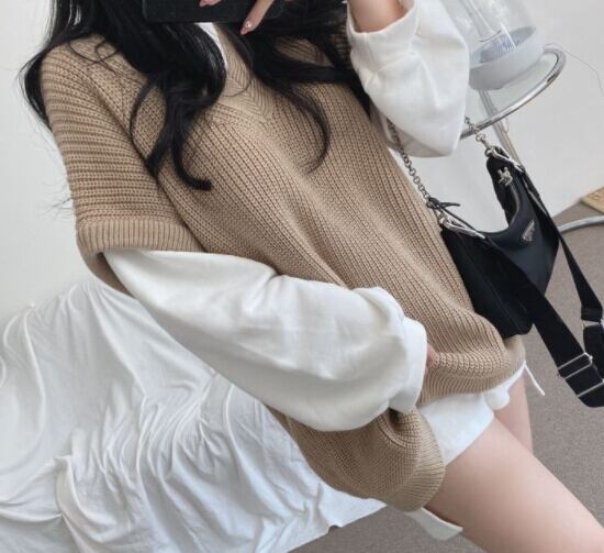秋冬新作 レディース トップス ベスト Vネック ドロップショルダー ニット セーター