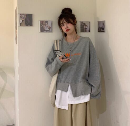春秋新作 レディース トップス トレーナー スウェット 重ね着風 ブラウス ゆったり