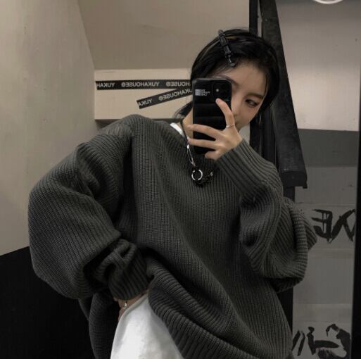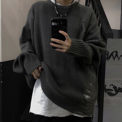 秋冬新作 トップス ユニセックス ニット セーター ダメージ加工 ハイネック