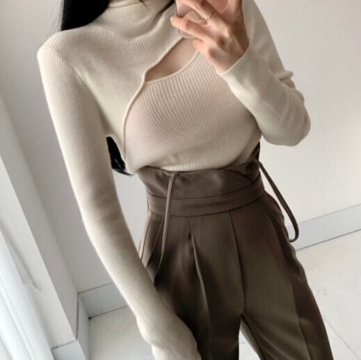 春秋新作 レディース トップス ニット ハイネック セーター 細身