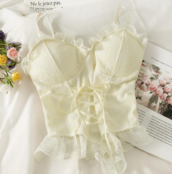 新生活 春新作 レディース フリル フレンチ風 インナー 下着 ベスト キャミソール レース