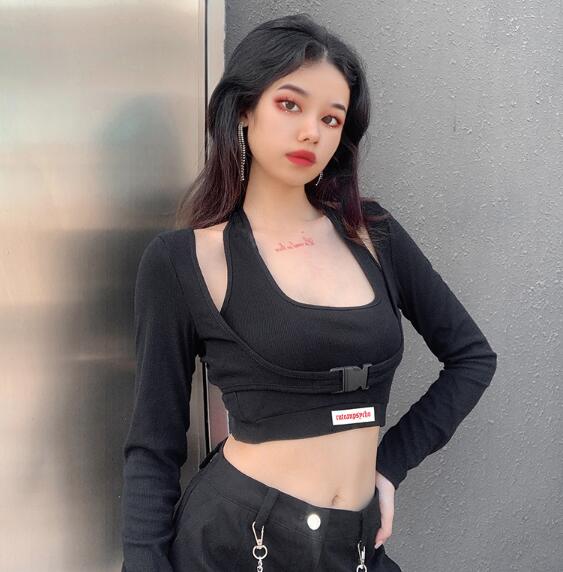 新生活 春新作 レディース トップス Tシャツ 長袖 重ね着風 ダンス衣装 細身 スリム