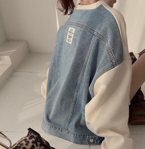 新生活 春新作 レディース トップス スウェット トレーナー ドッキング デニム