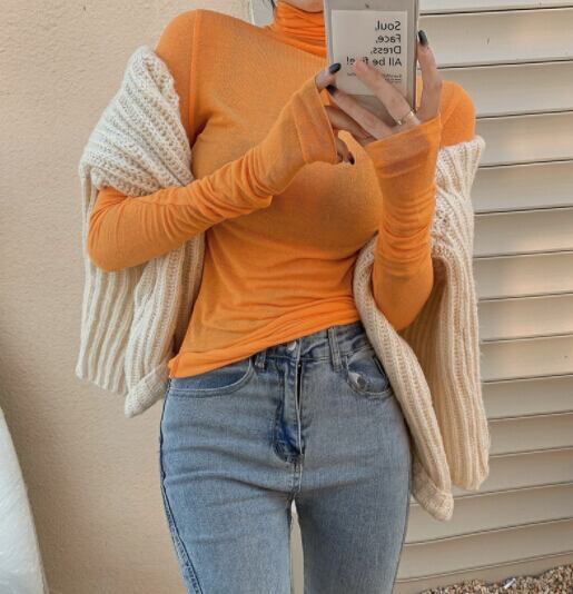 秋冬新作 レディース トップス ハイネック インナー 無地 細身 カラフル ニット