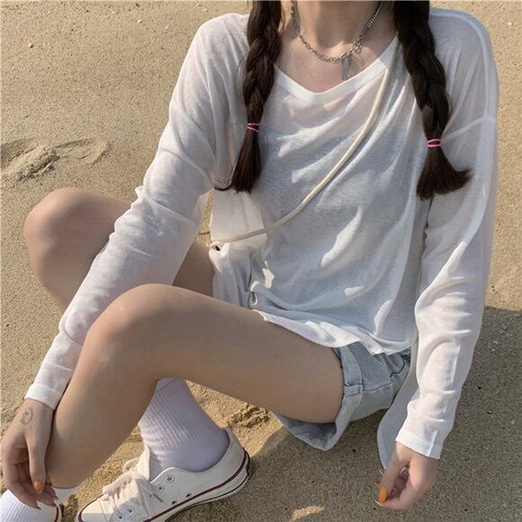 注目すべきアイテム 早い者勝ち トップス Tシャツ 薄手 日焼け対策 シースルー