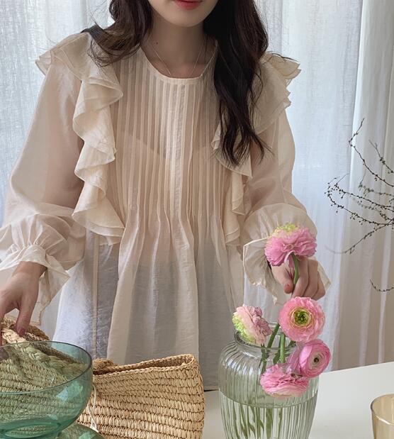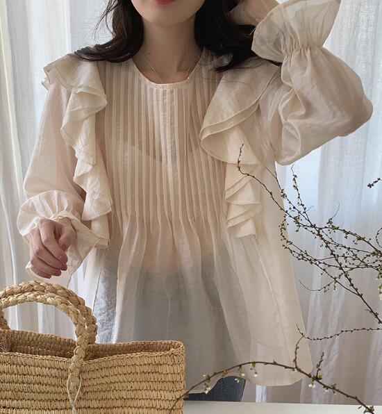 夏新作 レディース トップス シャツ 長袖 フレア シースルー 韓国風
