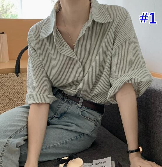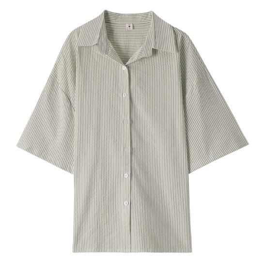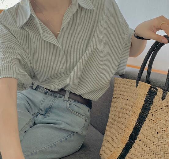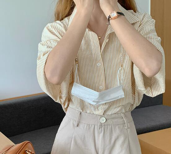 夏新作 レディース トップス シャツ 半袖 レトロ 前開き 縦縞