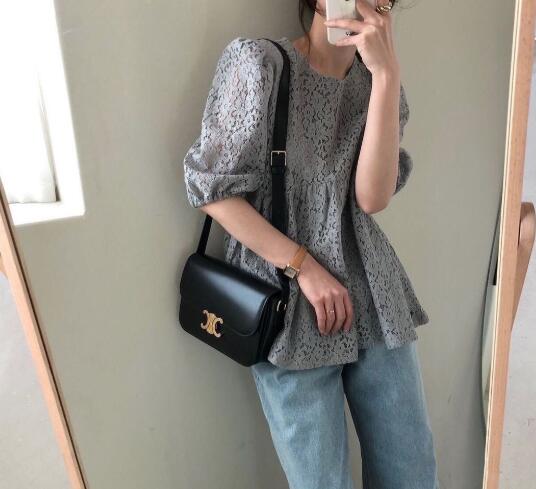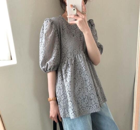 新作 レディース トップス Tシャツ シャツ 半袖 レース クルーネック バルーン袖