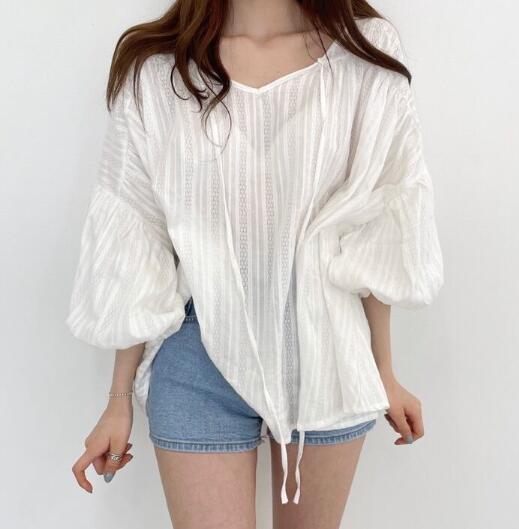 韓国風 chic トップス Vネック 夏新作 シースルー シャツ レディース