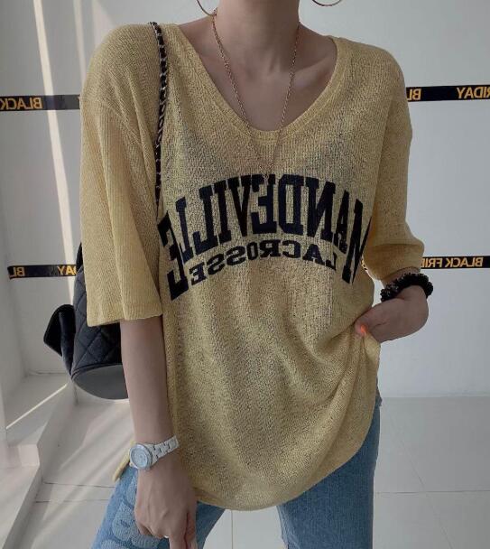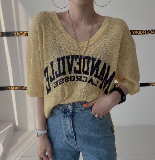 韓国風 chic トップス Tシャツ シースルー 夏新作 ニット クルーネック カジュアル
