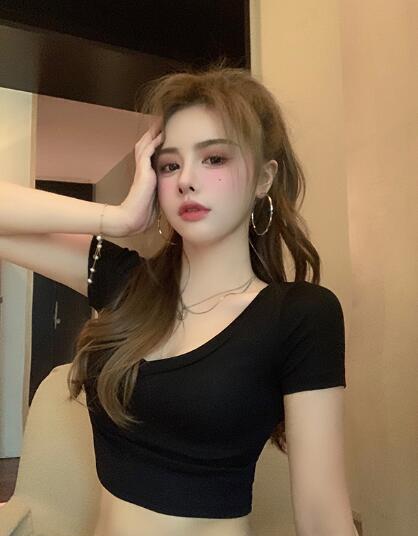 韓国風 chic トップス Tシャツ 夏新作 半袖 クルーネック ショート カットソー