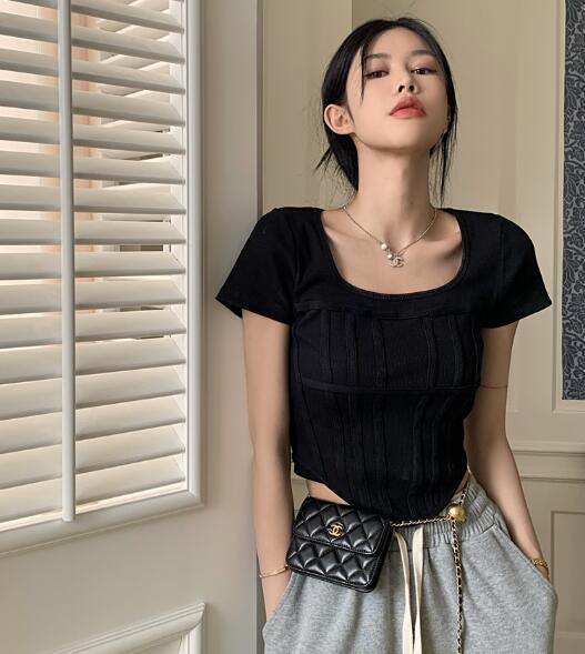 韓国風 chic トップス Tシャツ 夏新作 半袖 ショートカットソー 不規則