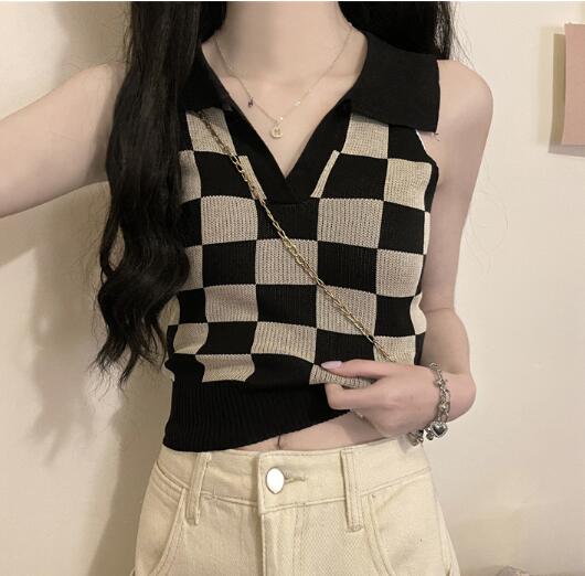 夏新作 レディース トップス ベスト インナー チェック柄 ビスチェ ニット