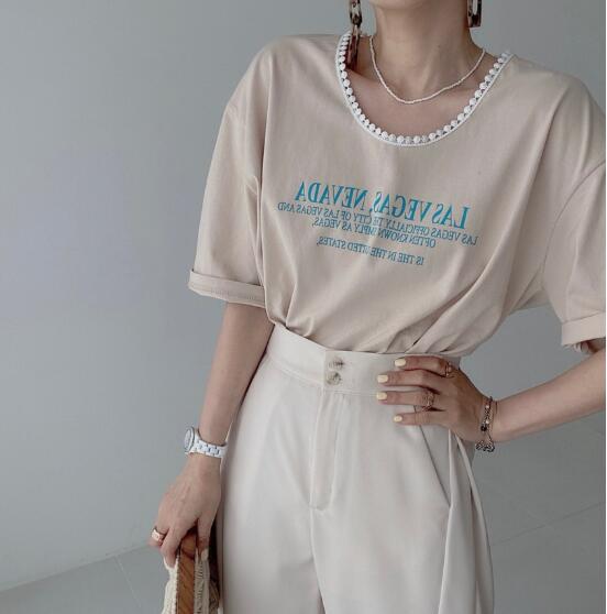 韓国風 chic トップス Tシャツ 半袖 夏ファッション プリント レディース