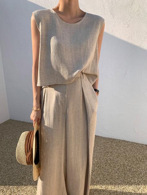 韓国風 トップス ベスト ノースリーブ ワイドパンツ 夏ファッション 半袖 ブラウス レディース