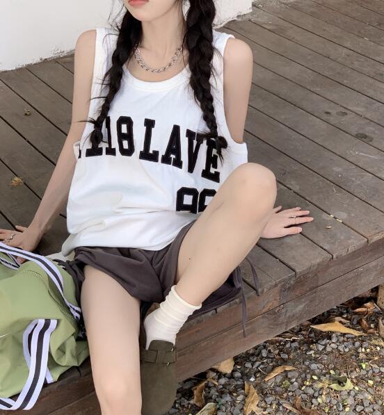 夏ファッション レディース トップス ベスト ノースリーブ シンプル ゆったり ガーリッシュ